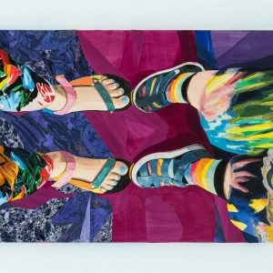 Powerful color combinations characterize Britt Dorenbosch’s collages: they really pop off the wall. The artist takes you into her daily existence and youth in snapshots from her life. In particular, motherhood, female strength, fertility and the impact of having a child take center stage. Plump toddler hands peeling a tangerine, sliced open pears referring to childbirth, a look down while pumping: these are intimate and personal moments from motherhood lovingly depicted. From this gentleness, Dorenbosch casts a sharp eye on the question of whether there is really room for the mother in our society.