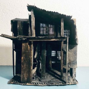 Campfens is inspired by the atmosphere of landscapes and built environments. “The narrow alleys in the city center of Utrecht, for example,” she says. “When the sun shines obliquely there, it’s already a film set, nothing more needs to be done.” She also gets inspired by forests with winding trees, crumbling dirty new buildings, vacant lots, and overwhelmingly large industrial machines. “I immediately feel like building on them in miniature.” Mystery plays a significant role in her work: secret doors, drawers, peepholes… “I love it when there’s more going on than meets the eye.”