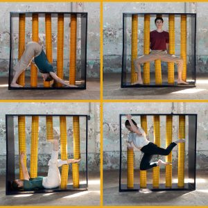 The human body takes a central place in the work of Maureen Jonker. She continually explores how to “arrange” the body in different spaces and situations. This interest stems from a sport she practiced for several years: synchronized swimming. Although you won’t find concrete references to this sport in her work, you can always recognize her urge to write choreographies in her artworks.