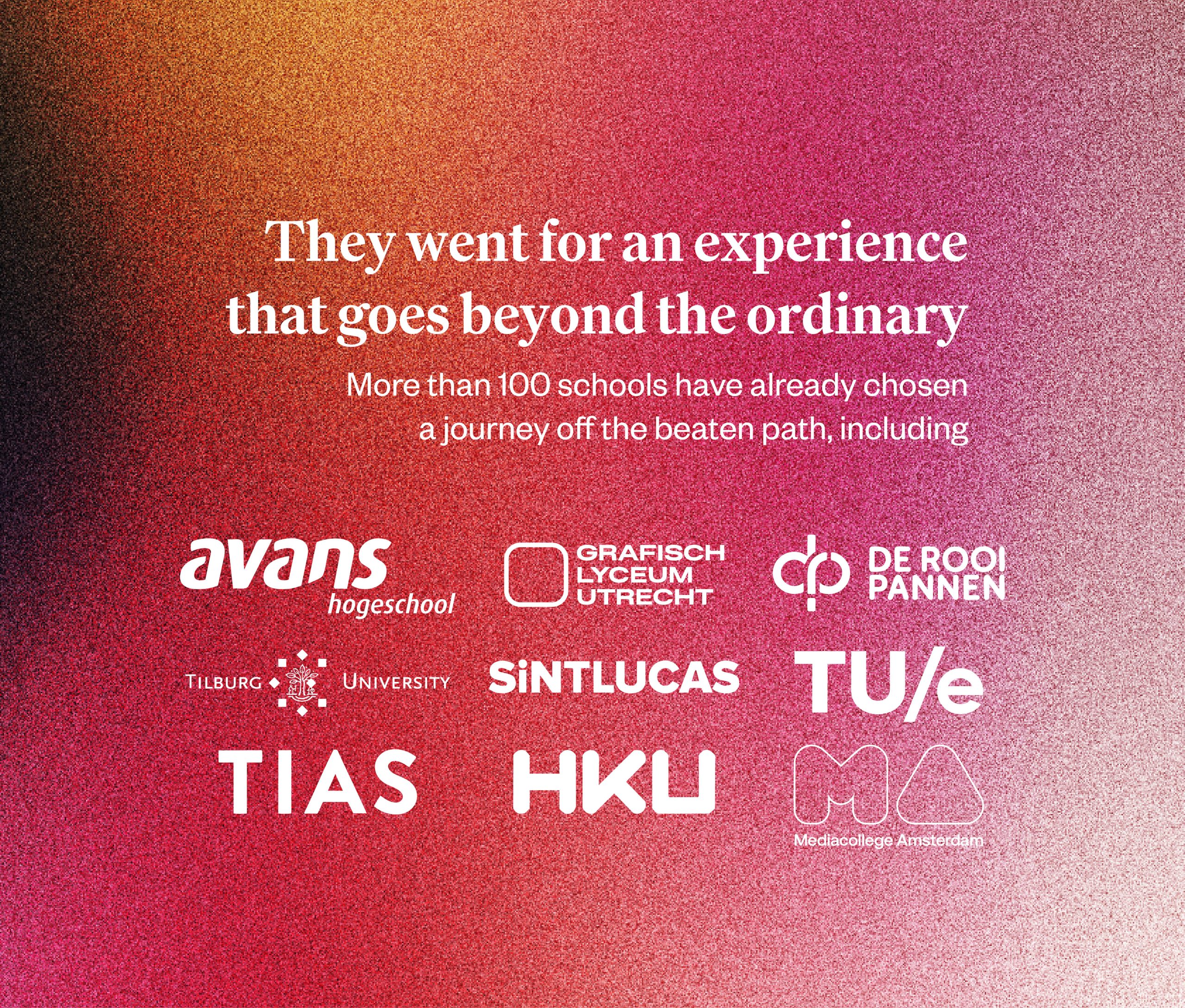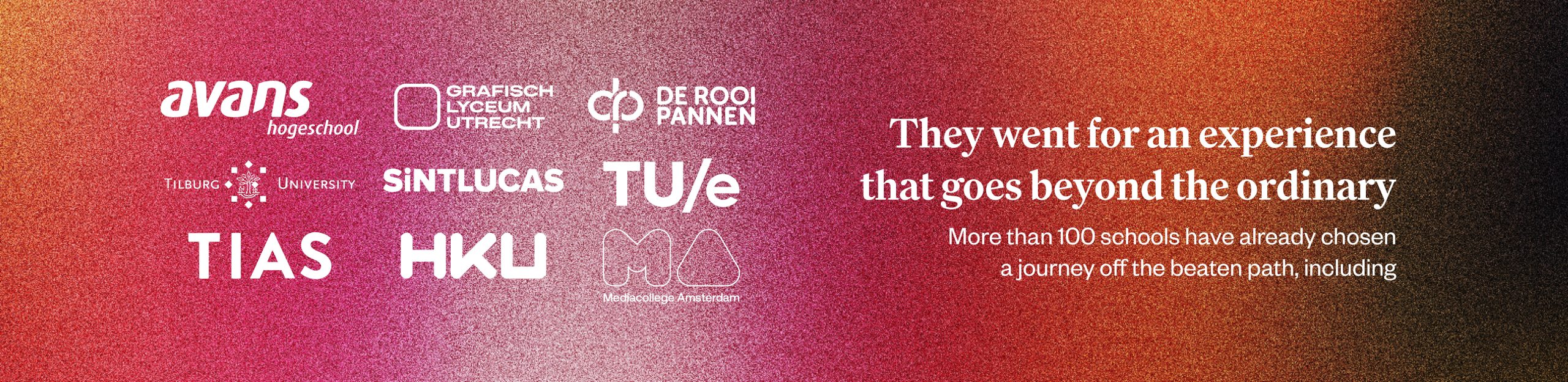 Experience an unforgettable adventure with your class inside the Doloris Maze. This crawl and climb maze guides students through corridors, stairs and rooms filled with art and creativity. It offers an exciting and accessible introduction to art and culture, created together with dozens of artists. Students explore the maze individually and without phones or devices.